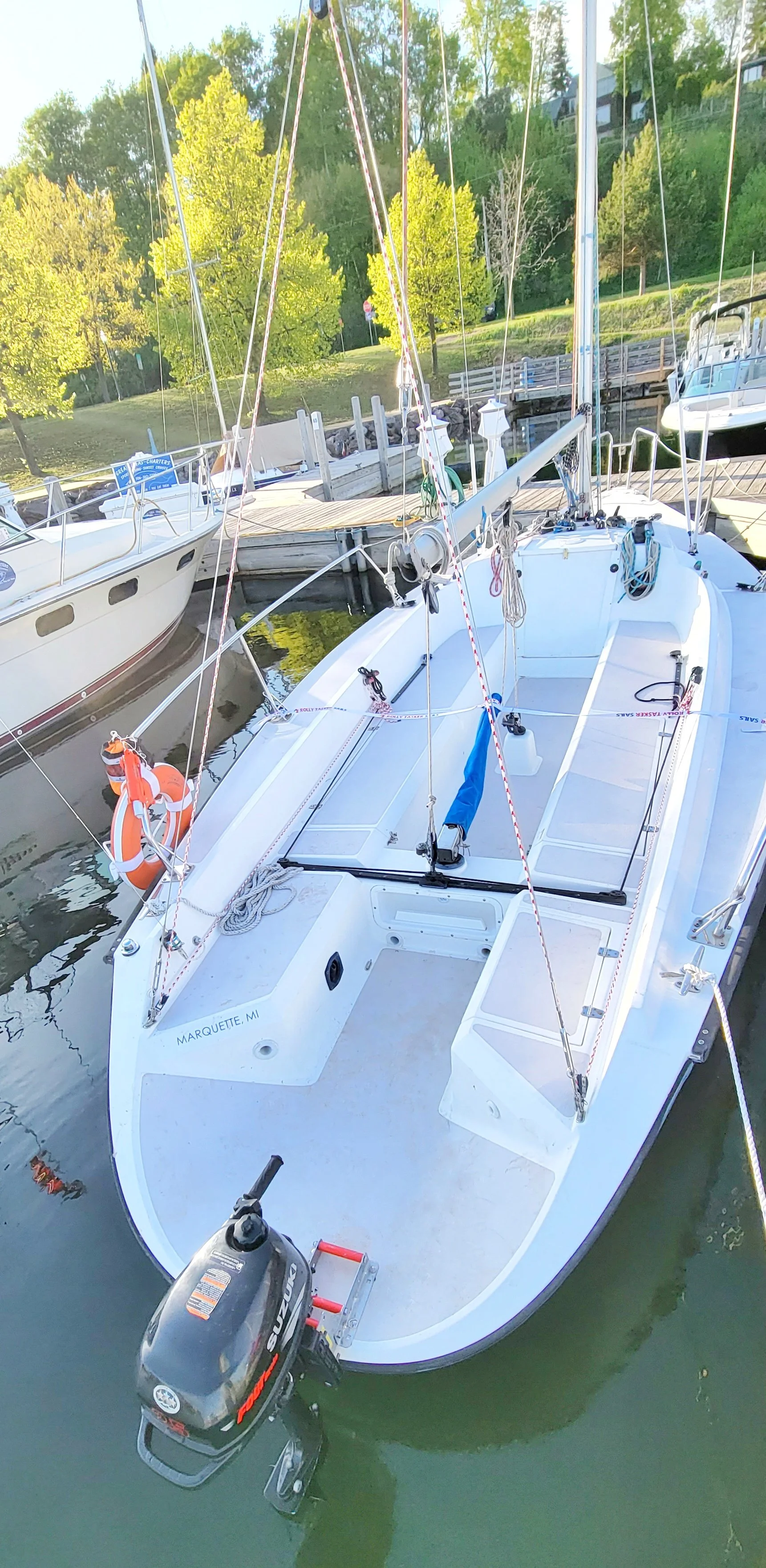 TSURU (pronounced 'soo-roo’) means origami paper crane, but for us, she represents a place of love, laughter and good times. We race her competitively in the Great Lakes and have taken countless long cruises with friends and family. One of only 2 hulls made by Bennett Brothers Yachts, she’s kept us safe for 10,000s miles and provided countless nights under the stars… not to mention dancing in the main salon and fabulous meals shared from her galley.